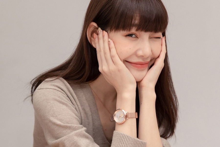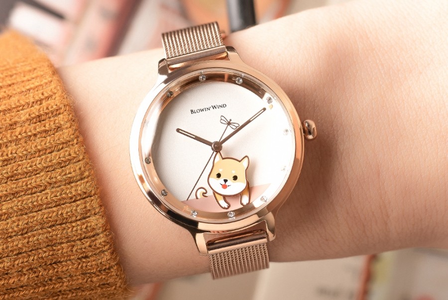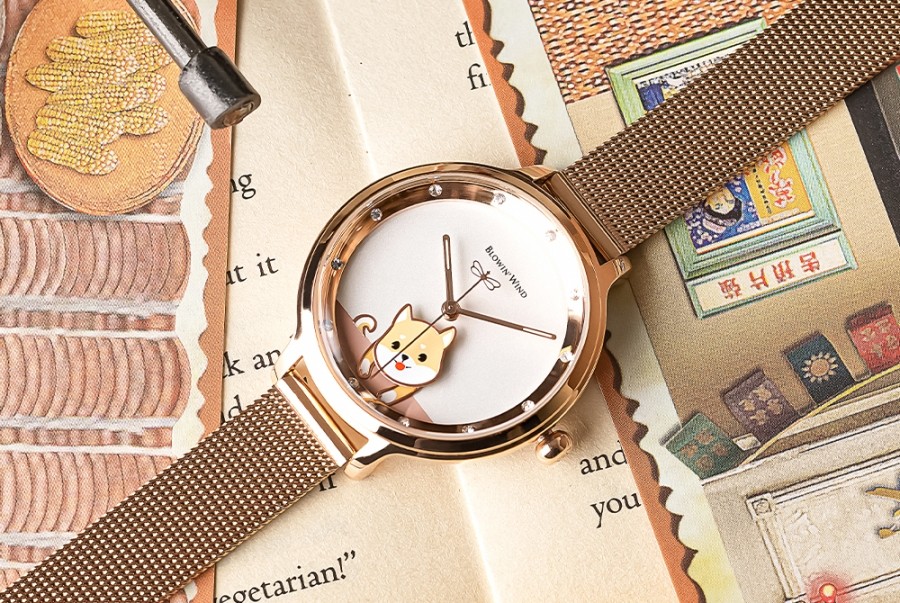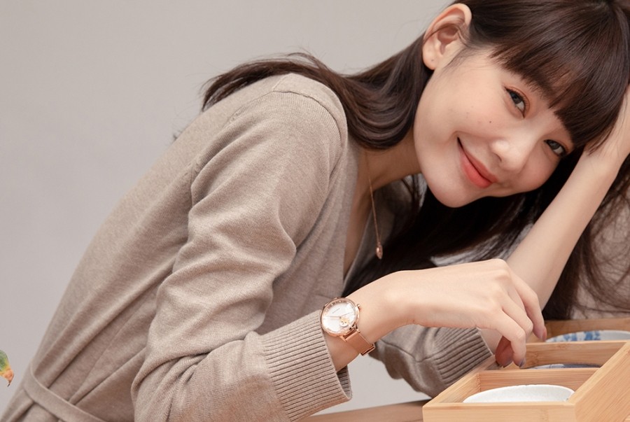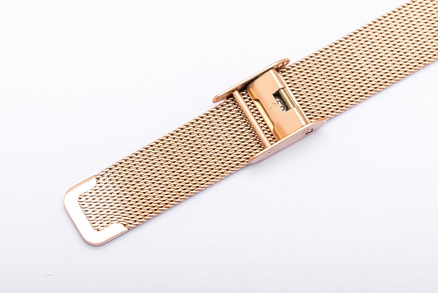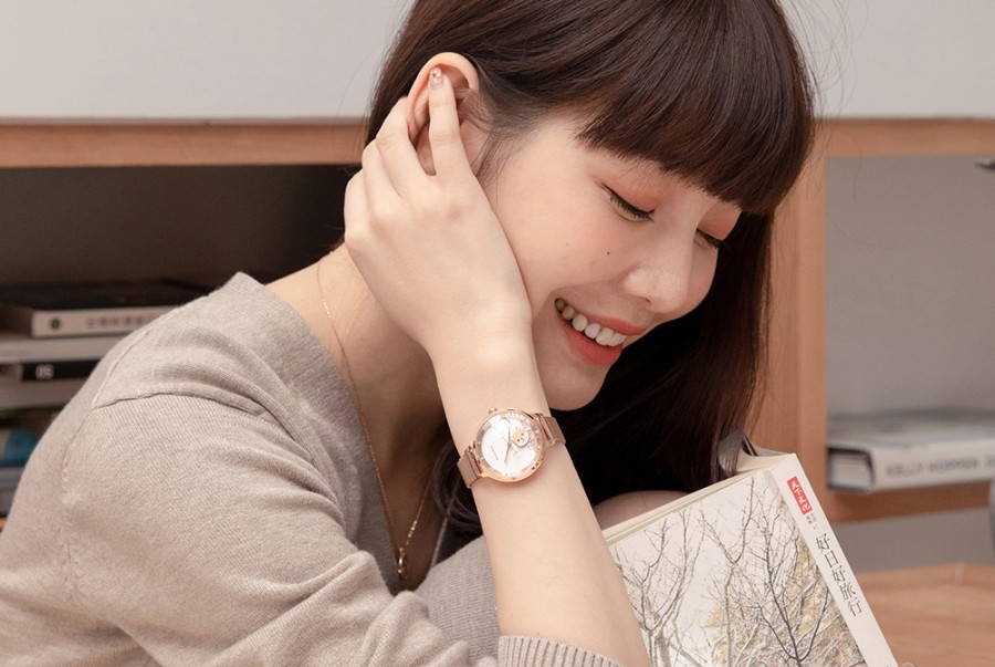 搭配輕薄的米蘭玫金錶帶