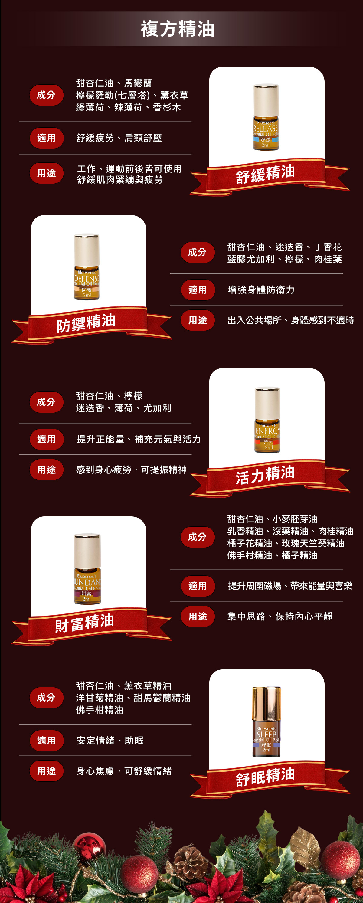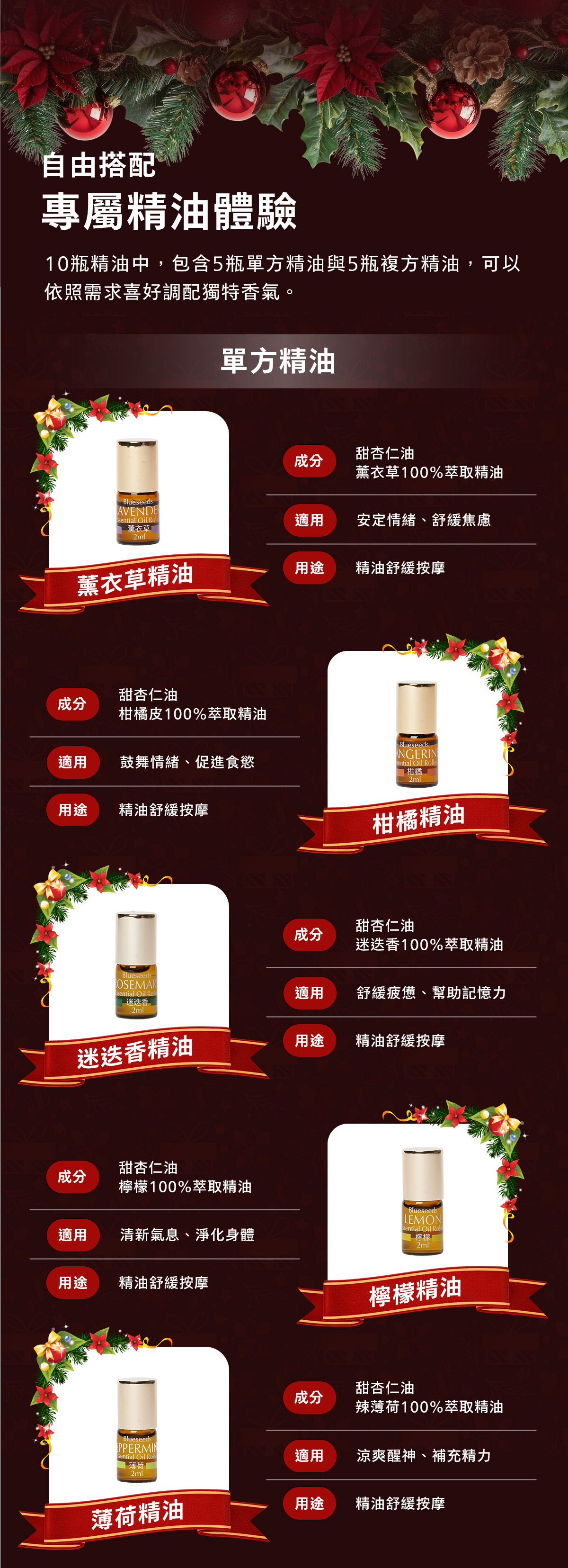 ⊙多款滾珠精油方便自選整組內有10款精油滾珠(柑橘、薰衣草、薄荷、迷迭香、檸檬、舒緩、舒眠、活力、財富、防禦),統整了『身』『心』『靈』療癒概念。