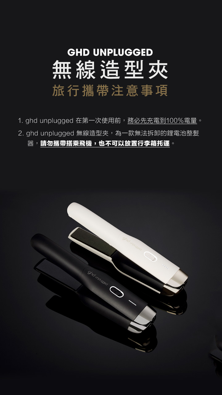 全球首創使用usb-c快充技術的無限造型夾,重量僅300g的羽量級機身,可裝入隨身化妝包輕鬆帶著走,同時依舊保有ghd卓越的185℃恆溫控制以及絕佳的造型性能,開機預熱時間僅45秒,造型使用續航可達20分鐘(註1),更可提升頭髮光澤度65%(註2),不論是車上或是電腦都可充電,隨充隨用不受時空限制,有線造型夾放家裡,無線造型夾帶著走,更無限的造型體驗、更健康光澤的完美秀髮、更值得信賴的專利科技,只有ghd才能超越ghd。