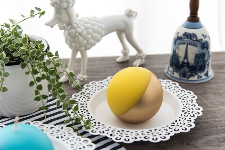 名稱:歐式 純色漫金 7cm 球形蠟燭│奶油黃 WS