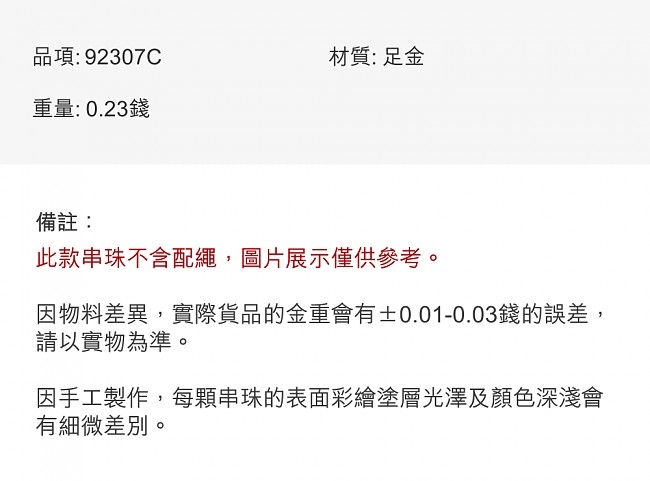‧重量:約0.23錢 (貨品重量會有±0.05錢的誤差,請以實際商品為準)