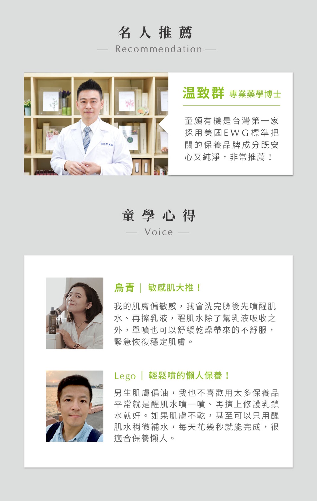 添加法國有機大麥若葉水、有機蘆薈萃取,提升肌膚彈性與緊緻度。