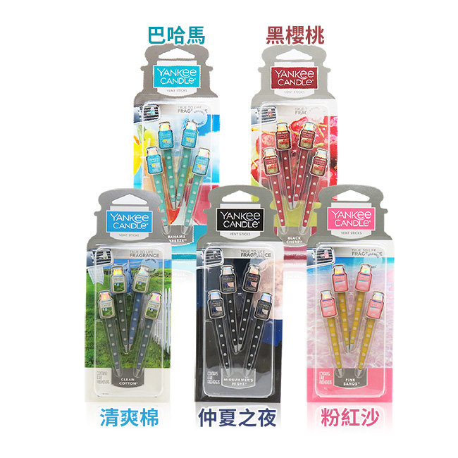 商品名稱:YANKEE CANDLE Car VENT 車用芳香夾(4gX4)-多款可選[仲夏之夜/清爽棉/巴哈馬微風/黑櫻桃/粉紅沙]