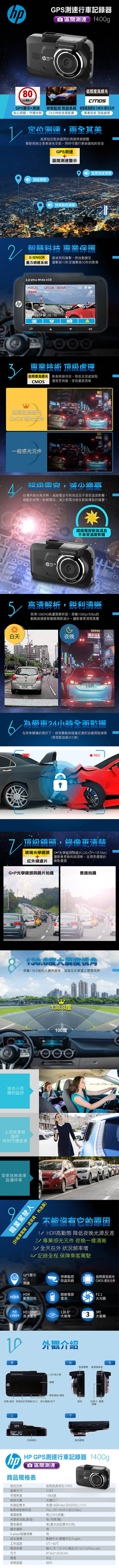 商品介紹:三年保固,圖資五年免費更新◆GPS警示+測速:高感知的定點測速照相提醒,貼心提醒駕駛提前注意車速免受罰,同時守護行車與錢包的安全。◆支援全新區間測速系統◆停車監控防盜系統:在停車關機的情形下,偵測震動與碰撞反應,會自動開啟錄影(需加裝電力線)。◆專業CMOS感光元件:以影像降躁技術降低光源處躁點,畫質更精緻,夜視畫面清晰。◆HDR寬動態技術:比起市面上多半使用的WDR,降低夜晚光源反差,逆光不曝光。◆採超級電容電池:台灣天氣多為炎熱,超級電容可耐高溫且不易受溫度影響,減少對電池發生膨脹爆裂的擔憂。◆鏡頭為F2.1大光圈:採玻璃光學鏡頭+紅外線濾片,以高透光率處理下,影像更銳利、夜間明亮度更佳。◆高清HD1080P畫質,讓影像清楚真實;搭載138.8度的大廣角鏡頭,加強左右車道之遼闊視野。商品內容:型號:f400g商檢合格字號:R3A199NCC型式認證碼: 免驗顏色:黑高清200萬畫素、高動態範圍攝影(HDR)、解析度:FULL HD 1920x1080(30fps)F2.1鏡頭光圈、138.8 度廣角鏡頭(玻璃鏡頭+ 紅外線濾片)螢幕尺寸:3吋儲電:超級電容記憶卡:支援 16GB以上記憶卡 (Class 10以上)專業MSC 8336N (PS5260) 高感光元件單品重量:0.09Kg 單品尺寸(mm):87.6X53.8X31彩盒尺寸(mm):152X98X75配件:托架2、CD-ROM光碟1、快速使用手冊1、保固卡1、電源連接器1國際條碼:4711148724241商品原產地:中國配送辦法:完成付款後會盡速使用本公司配合物流寄出, 出貨時間三個工作天內 (不含例假日)遇特殊節日出貨時間依物流配送為主,恕無法指定出貨時間,敬請見諒。※本島全配,僅外島不配送注意事項:送禮訂單,若在成立訂單時未填寫收件者地址,收件者可以至「我的>商品票券>點擊商品>填寫地址。若在成立訂單後10天內未填寫地址,則訂單將自動取消。」退換貨說明:如欲退貨,您可透過LINE禮物 > 訂單下單 > 「洽詢訂單問題」提出取消要求給供應商。本商品無法提供換貨服務,如需其他商品請您重新購買 保固:1.產品功能:一年保固2.外觀、人為因素不保固3.七天鑑賞期內如需退換貨,需保持原完整盒裝商品故障維修:1.如已超過了七天鑑賞期的退換貨時效,故該商品僅提供維修服務,敬請見諒!2.維修需自行負擔寄回商品的運費,維修廠商則會幫您負擔寄還商品的運費。商家資訊公司名:旺德電通股份有限公司地址:新北市五股區五工三路116巷6號統一編號:23046204負責人:吳烱舜客服電話: 台北總公司:02-89904440 台中分公司:04-24790960 高雄分公司:07-3714688客服LINE ID : @wonder.tw點連結加入: http://bit.ly/2x7zlLU客服時段:週一~週五 08:30~17:30 (12:00-13:00為午休時間 )