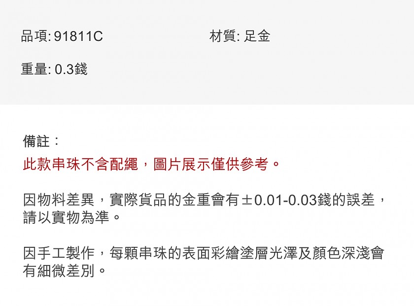 ‧重量:約0.3錢(貨品重量會有±0.05錢的誤差,請以實際商品為準)