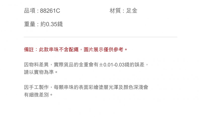 ‧重量:約0.43錢 (貨品重量會有±0.05錢的誤差,請以實際商品為準)