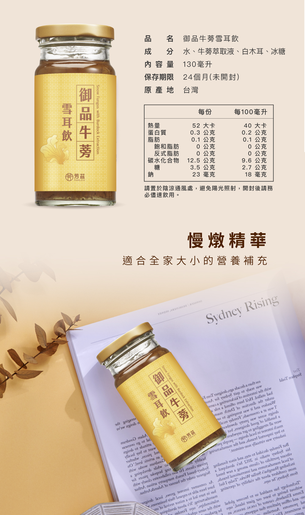 成分:水、牛蒡萃取液、白木耳、冰糖
