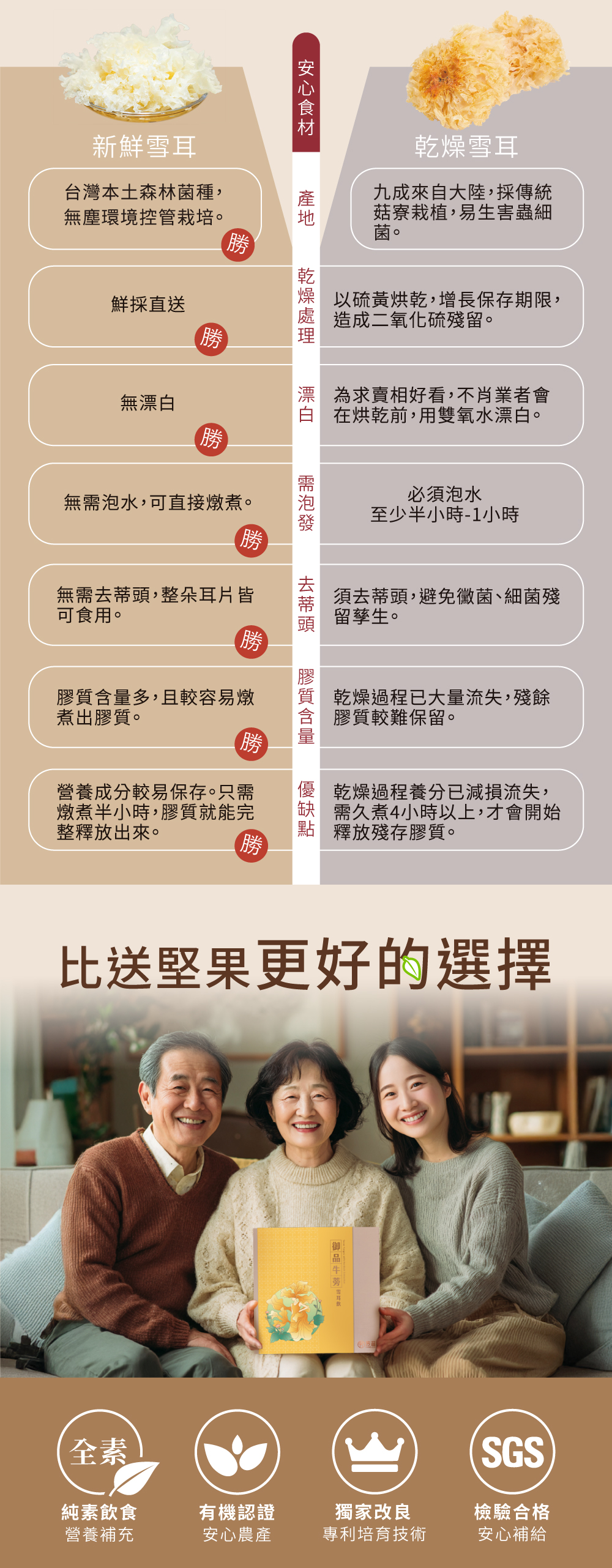 .全素配方,含植物性膠質幫助調整體質.牛蒡含膳食纖維,幫助消化.台灣專利雪耳含多醣體調節生理機能