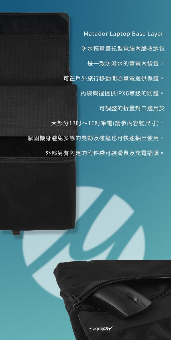 給時尚男友【Matador 鬥牛士】Laptop Base Layer 防水輕量筆記型電腦內膽收納包 - 黑色 登山 露營 旅行 出遊 收納 | NearMe | 線上送禮平台『獨家支援 收禮者改選禮物』