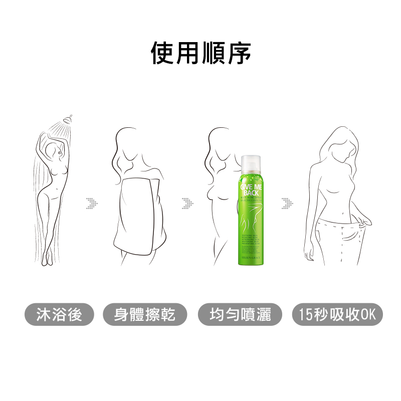 每天1次,於身體清潔完畢擦乾後直接距離10公分大範圍噴灑,由於堅持精油有感濃度,噴出的時候容易嗆到,請於大空間內噴,噴完後無需塗抹