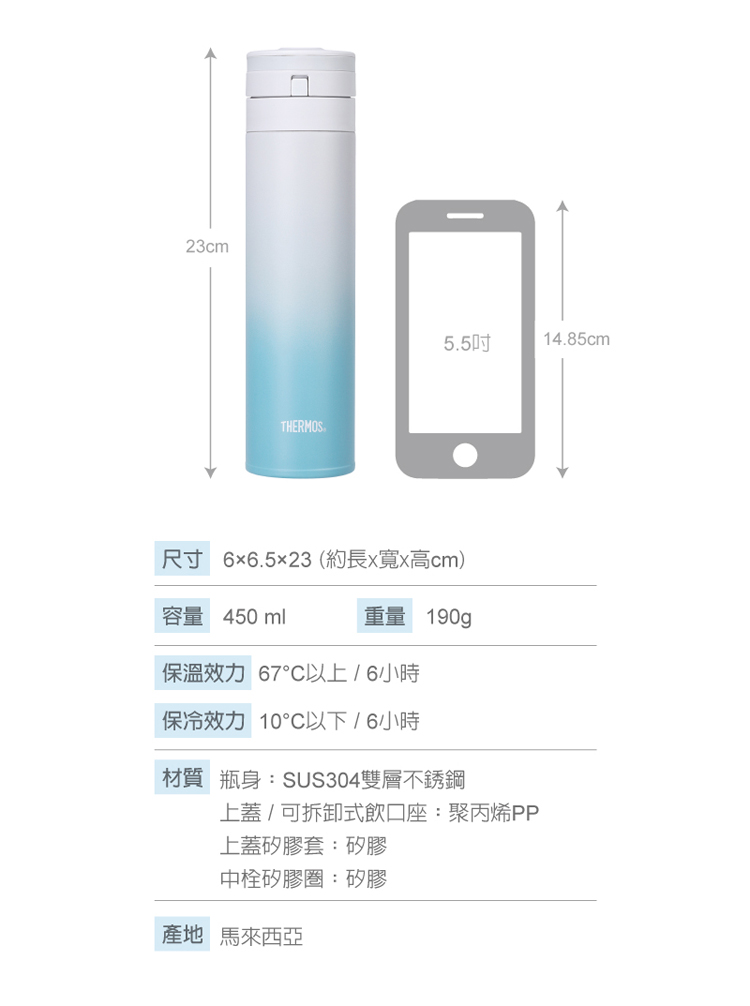 ● 符合人體工學的杓狀按壓式設計,上蓋彈開飲用好輕鬆