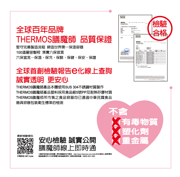 ● 通過SGS檢測符合行政院衛生署「食品器具容器包裝衛生標準」之規定,無塑化劑、不含重金屬、不含有害物質、可重複使用、低污染● 超大口徑設計,方便盛入食物或飲品,清洗更容易,也可當一般保溫杯使用。● 雙層不鏽鋼真空構造,完全阻絕空氣傳熱,超強保溫、保冰效果。● 可保鮮食物及水果,一罐多用。● 無飲用方向限制,打開蓋子後,任何罐口角度皆可飲用。● 雙層O型矽膠圈設計,打開即可飲用,輕鬆旋緊,即可防止漏水。● 大口徑,罐口可直接放入冰塊。● 罐身不冒汗,外出攜帶時也能安心放置提袋內,不必擔心弄濕文件。● 構造簡單,容易清洗常保衛生。● 真空構造,完全阻絕空氣傳熱,超強保溫、保冰效果,500ml可燜煮稀飯、 養生茶品及簡易料理