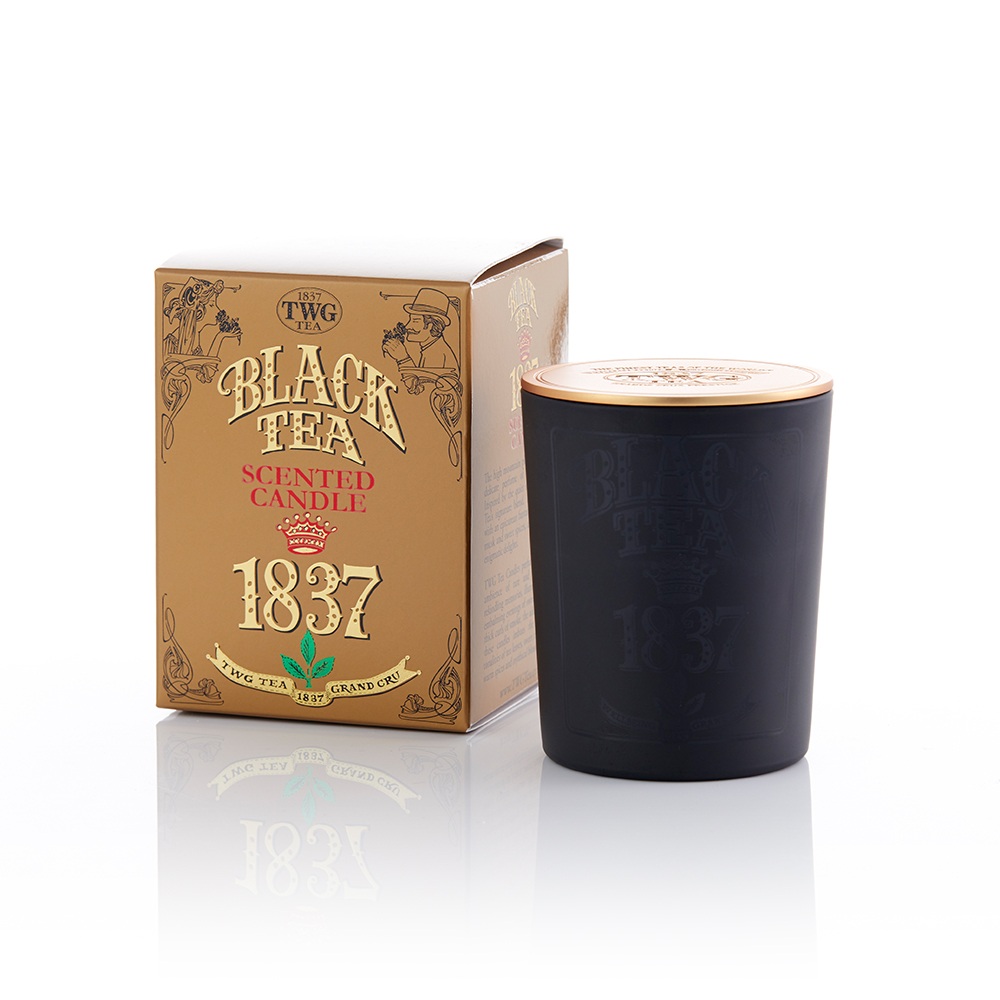 啟發於 TWG Tea 招牌調配茶, 1837紅茶薰香蠟燭擁有著呼應此茶的特徵。1837 紅茶薰香蠟燭的香氣飄散著紅茶、香草、麝香與甜香料的芬芳,彷彿身在高山上嗅著新鮮採摘的茶葉。