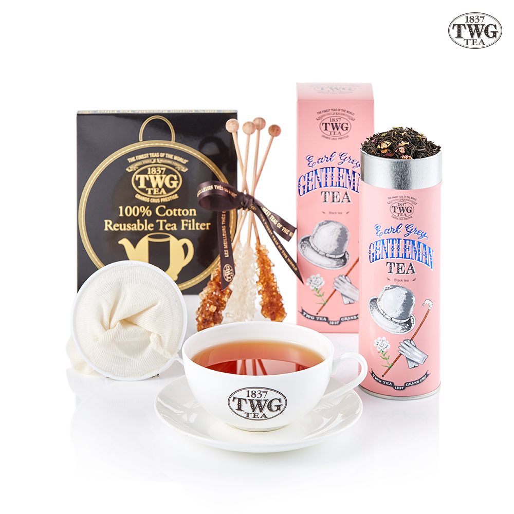 • 商品內容: 紳士伯爵茗茶禮物組 Earl Grey Gentleman (紳士伯爵茶黑茶100g/罐+早茶杯盤組+純棉濾茶網+茶糖棒)