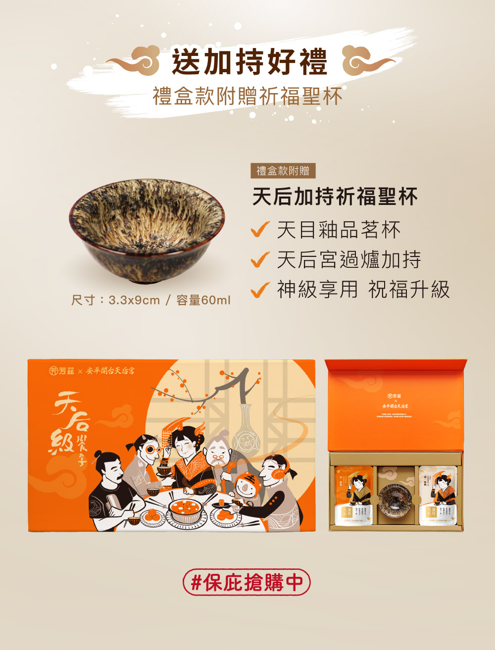 名稱:天后平安祝福禮盒(常溫)-滴雞精10包/盒,附贈限量加持御守、加持聖杯及天后聯名款專屬精美提袋。