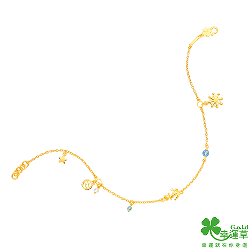商品介紹商品內容黃金總重量(約):約1.40錢(5.25g)(±0.14錢)。墜飾尺寸(cm):主墜約1cm x 1cm。腳鍊尺寸(cm):鍊長約23.5cm,含預備鍊。其他材質:水晶。商品包裝配件:幸運草包裝盒、幸運草包裝袋、幸運草保固卡。配送辦法