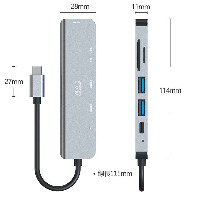 1.HDMI接口:支援4K 30Hz2.SD /microSD 讀卡器:SD和TF卡不可以同時讀取;讀寫速度受卡的規格影響。3.USB 2.0:480Mbps(60MB/s)4.USB 3.0:5Gb/s (640MB/s)5.PD:87W6.材質:ABS+鋁合金7.尺寸:114x28x11mm、線長125mm8.重量:42.6g配送辦法完成付款後會儘速使用本公司配合的物流寄出,出貨時間三日工作天(不含例假日)。注意事項・送禮訂單,若在成立訂單時未填寫收件者地址,收件者可以至「我的 / 我的禮物/ 點擊商品 / 填寫地址。若在成立訂單後10天內未填寫地址,則訂單將自動取消。退換貨說明・如欲退貨,您可透過LINE禮物 / 訂單下方 / 洽詢訂單問題,提出取消要求給供應商。・本商品無法提供換貨服務,如需其他商品請您重新購買。・凡商品本身之問題 (例如無法連線、沒有聲音、寄錯商品等) 皆可於七日內申請換貨一次,並限換同一件商品。請保持商品的原始狀態 (無髒汙、磨損毀壞、加工改造等) 與原始包裝 (內外包裝、提袋、贈品、發票等),勿直接將商品在無任何外箱或安全包裝下寄回:106台北市大安區安居街77號 美勢科技股份有限公司收。・對商品有任何疑慮,請與我們連絡,我們會立即為您處理。商家資訊公司名:美勢科技股份有限公司地址:106台北市大安區安居街77號統一編號:55757824客服電話:02-2733-9300服務時間:國定上班日10:00~18:00
