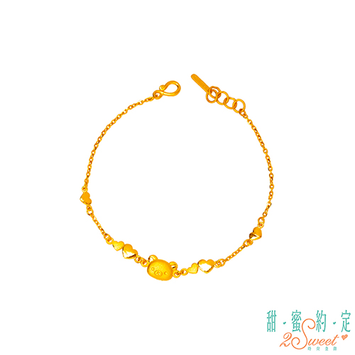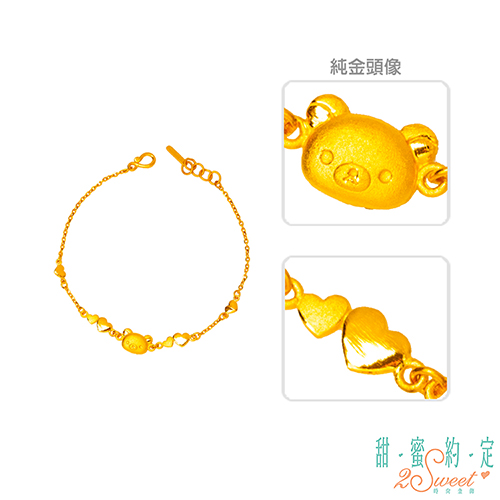 商品介紹商品內容黃金總重量(約):約1.20錢(4.5g)(±0.10錢)。墜飾尺寸(cm):拉拉熊主題約0.7cm x 1cm 。手環尺寸(cm):手鍊全長約17.5cm,含1.5cm預備練。商品包裝配件:拉拉熊原廠授權包裝盒、拉拉熊包裝袋、拉拉熊保證卡。備註1:此商品由甜蜜約定特約經銷商出貨。配送辦法