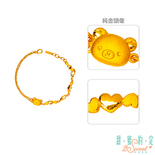 商品介紹商品內容黃金總重量(約):約1.75錢(6.56g)(±0.10錢)。墜飾尺寸(cm):拉拉熊主題約0.7cm x 1cm 。手環尺寸(cm):手鍊全長約17.5cm,含1.5cm預備練。商品包裝配件:拉拉熊原廠授權包裝盒、拉拉熊包裝袋、拉拉熊保證卡。備註1:此商品由甜蜜約定特約經銷商出貨。配送辦法