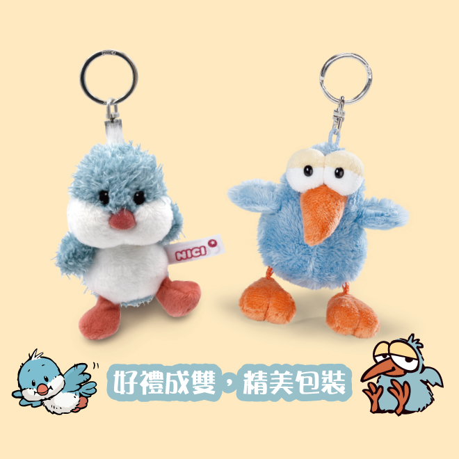 NICI拉拉鳥知更鳥鑰匙圈組,有拉拉鳥鑰匙圈1個和1山藍知更鳥鑰匙圈1個,可以掛包包或掛鑰匙,可愛又實用。