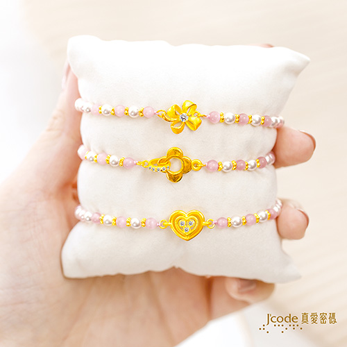 商品介紹商品內容黃金總重量(約):約0.55錢(2.06g)(±0.10錢)。墜飾尺寸(cm):主題約0.9cm x 1.6cm。手鍊尺寸(cm):手鍊全長約16~18cm,含預備鍊長度約3cm。其他材質說明:粉晶(粉)、施華洛世奇水晶珍珠、施華洛世奇鋯石/棉繩。商品包裝配件:真愛密碼包裝盒、真愛密碼包裝袋、真愛密碼保固卡。配送辦法