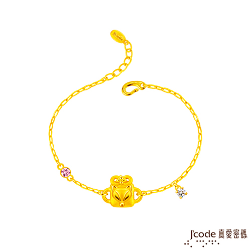 商品介紹【愛心狐仙系列】狐仙招人緣、招戀情、招貴人。9999純金完美製作。開運贈禮、生日禮物首選。抗氧化,佩戴不過敏。保值黃金,送禮自用兩相宜。商品內容黃金總重量(約):約0.80錢(3.00g)(±0.10錢)。墜飾尺寸(cm):主題約1.2cm x 0.9cm。手鍊尺寸(cm):手鍊全長約16.5cm,約含2cm預備鍊。其他材質說明:施華洛世奇水晶/鋯石。商品包裝配件:真愛密碼包裝盒、真愛密碼包裝袋、真愛密碼保固卡。配送辦法