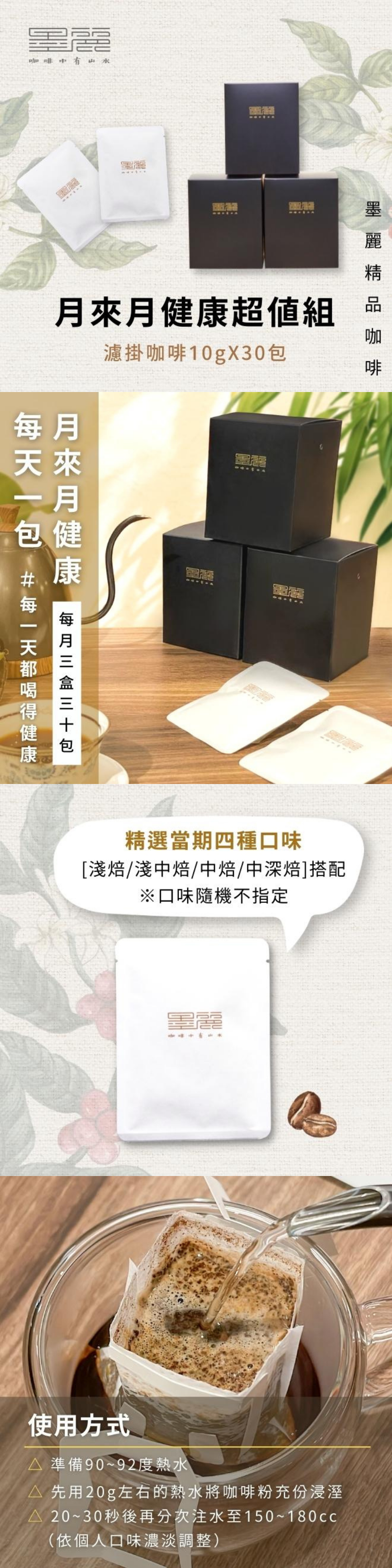 【墨麗精品咖啡】月來月健康超值組:濾掛咖啡10gX30包