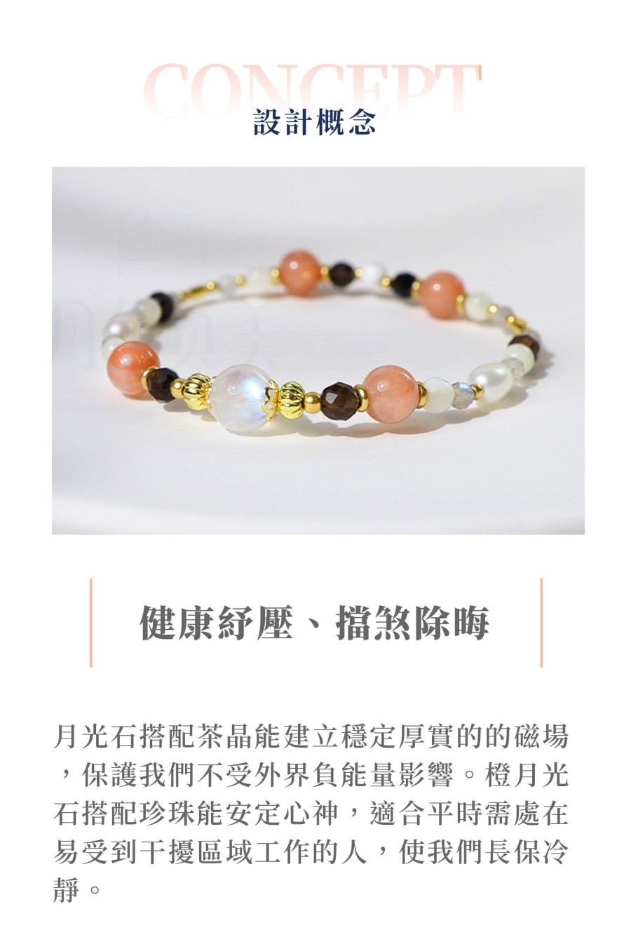 ・月光石、橙月光石、珍珠母貝、珍珠、茶晶、拉長石