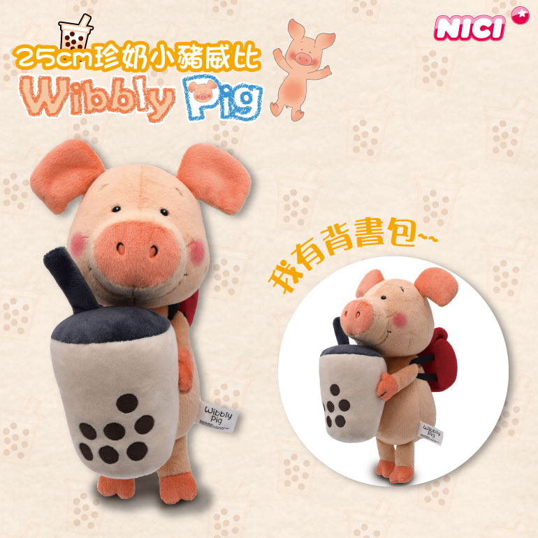 揹著繡有豬豬圖案背包的小豬威比,來到台灣四處旅行,當然也愛上了台灣最受歡迎的珍奶,因此推出了這次的25cm珍奶小豬威比坐姿玩偶,台灣獨家款式,限量推出,千萬別錯過。還等什麼,就帶著他一起吃吃喝喝到處旅行吧^^