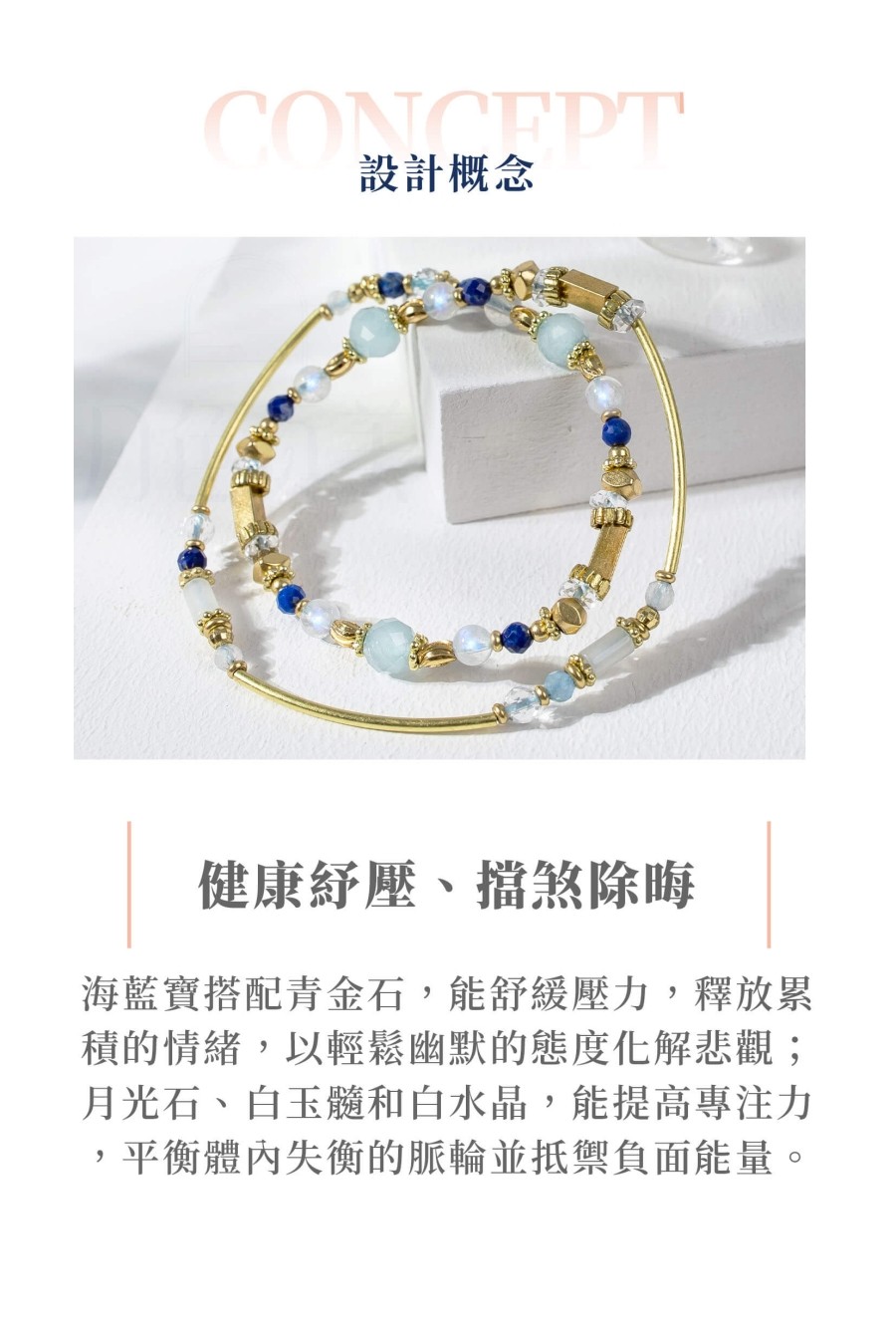 ・海藍寶、青金石、月光石、白玉髓、白水晶