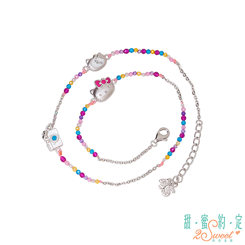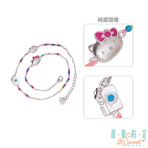 商品介紹商品內容墜飾尺寸(cm):主題約0.9cm x 1.1cm。手鍊尺寸(cm):雙圈造型純銀手鍊:手鍊全長展開約33cm,配戴時為雙圈造型,長度約17cm,含3cm預備鍊。其他材質說明:925純銀/水晶/琺瑯。商品包裝配件:HelloKitty包裝盒、HelloKitty包裝袋、HelloKitty保證卡。備註1:雙圈造型手鍊。備註2:此商品由甜蜜約定特約經銷商出貨。配送辦法