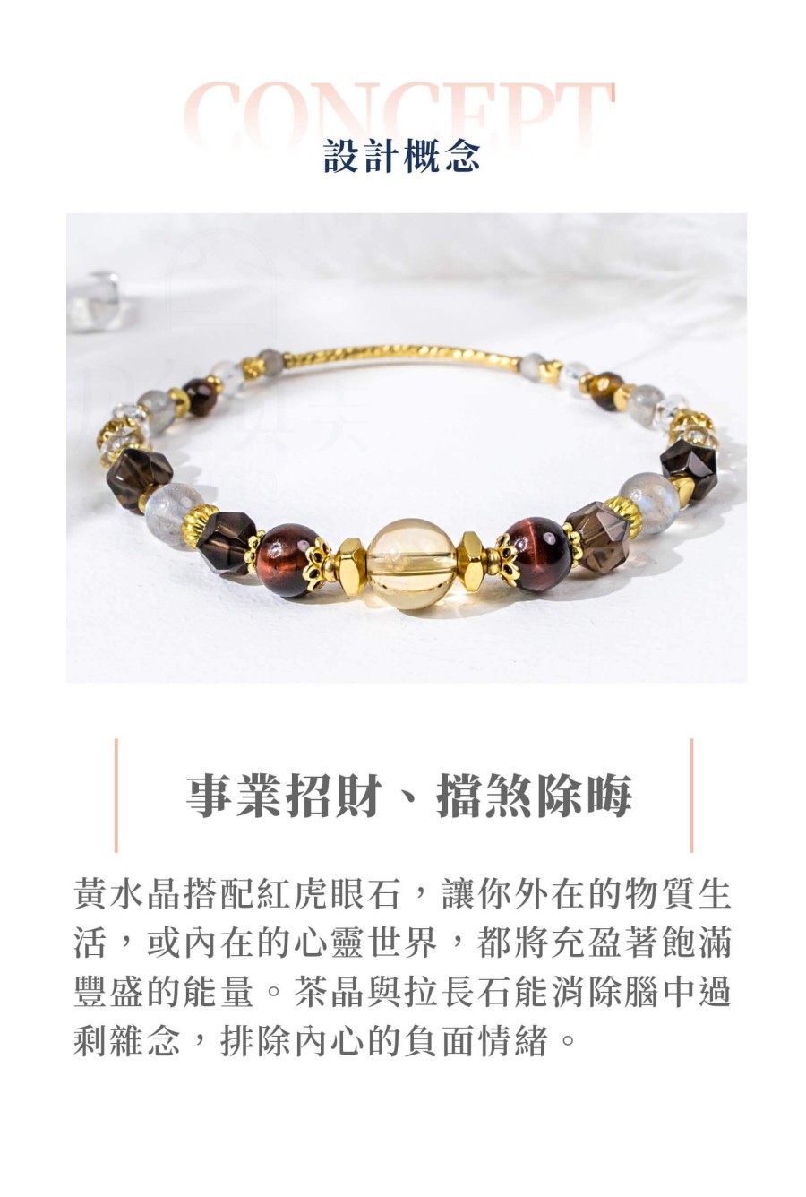 ・黃水晶、紅虎眼石、茶晶、拉長石