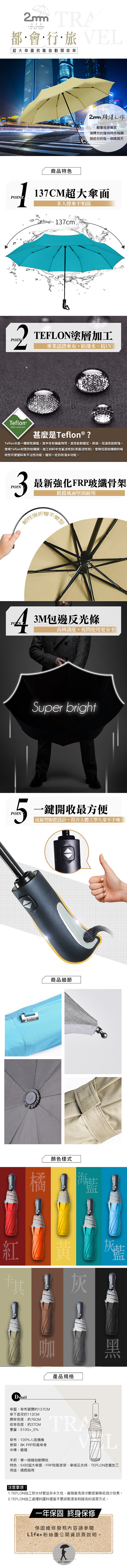 名稱:2mm 都會行旅 超大傘面抗風自動開收傘