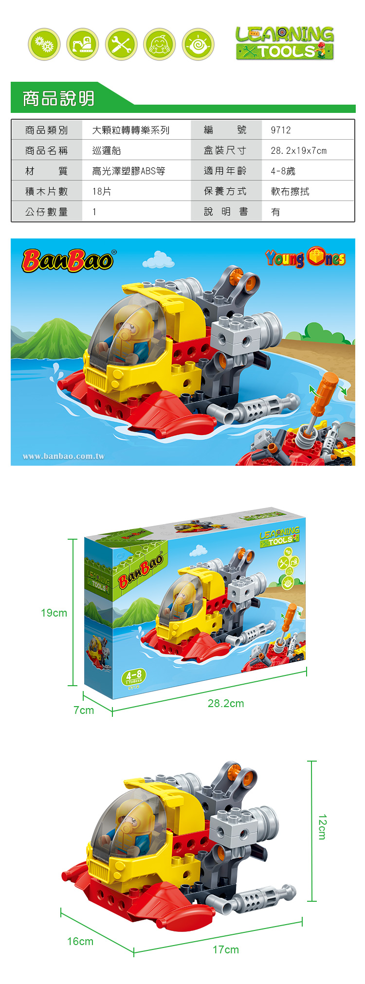 ◇ 商品品名:NO.9712 大顆粒轉轉樂-巡邏船