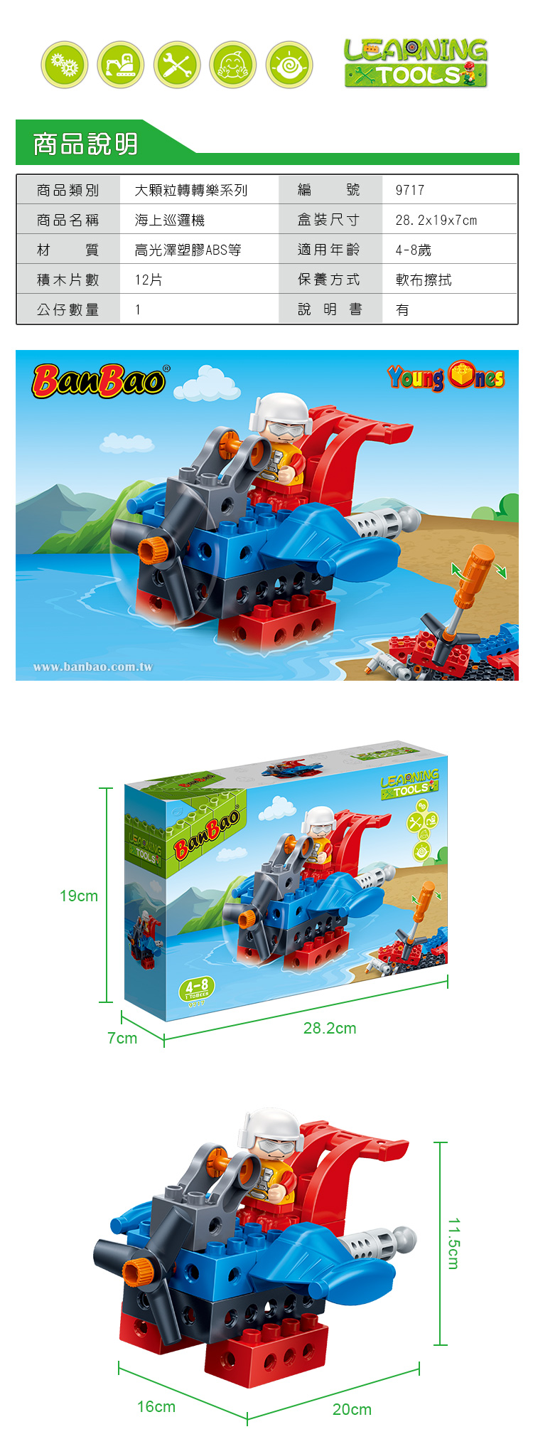 ◇ 商品品名:NO.9717 大顆粒轉轉樂-海上巡邏機