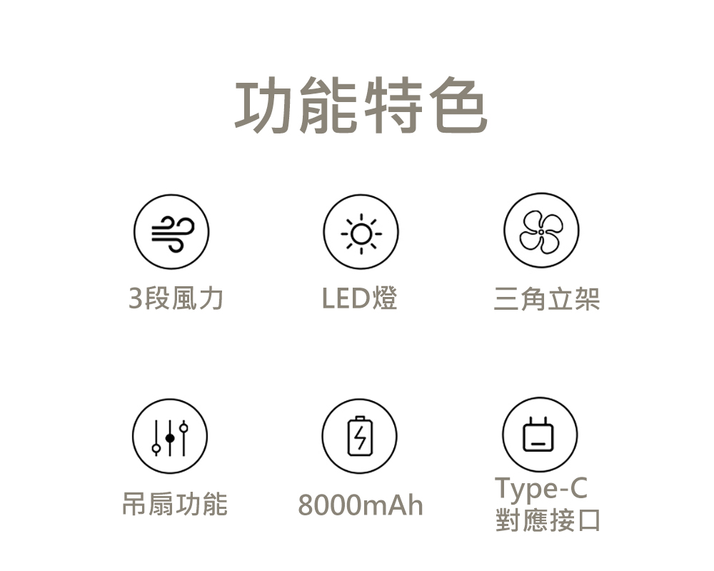 名稱:E.B .MADE 6.5吋戶外多功能搖控LED燈伸縮立扇吊扇二合一充USB充電風扇8000mAh