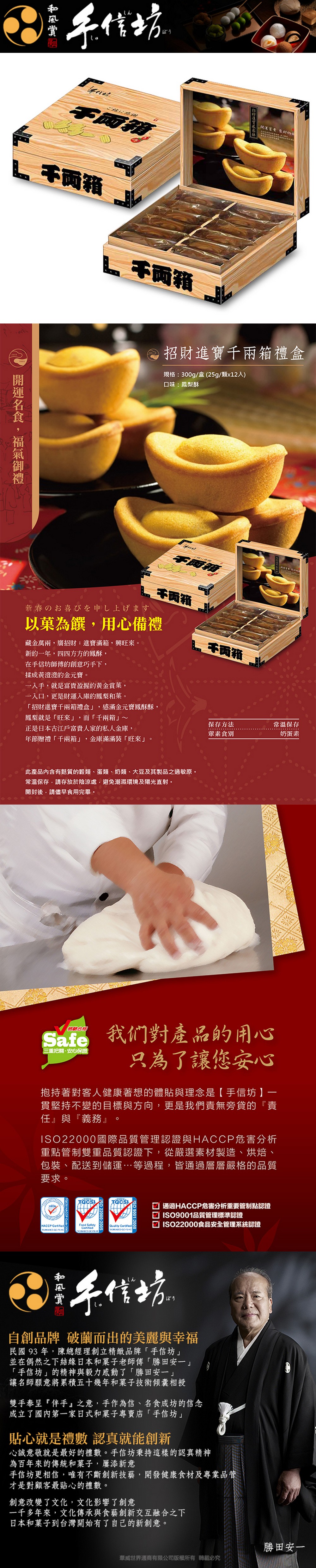 二、商品組合:手信坊招財進寶千兩箱禮盒,12入/盒,共12盒。