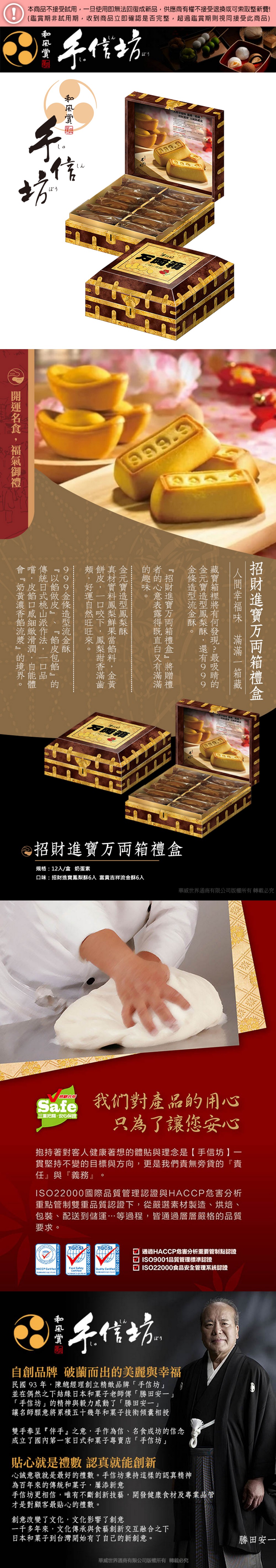 二.商品組合:【手信坊】招財進寶萬兩箱禮盒,12入/盒,共3盒