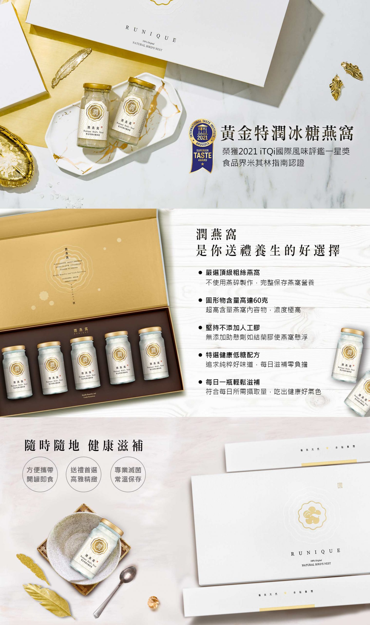 【潤燕窩】喜歡有你的每一天!24K極濃白金潤燕盞1入+黃金特潤冰糖燕窩1入(環保裝)
