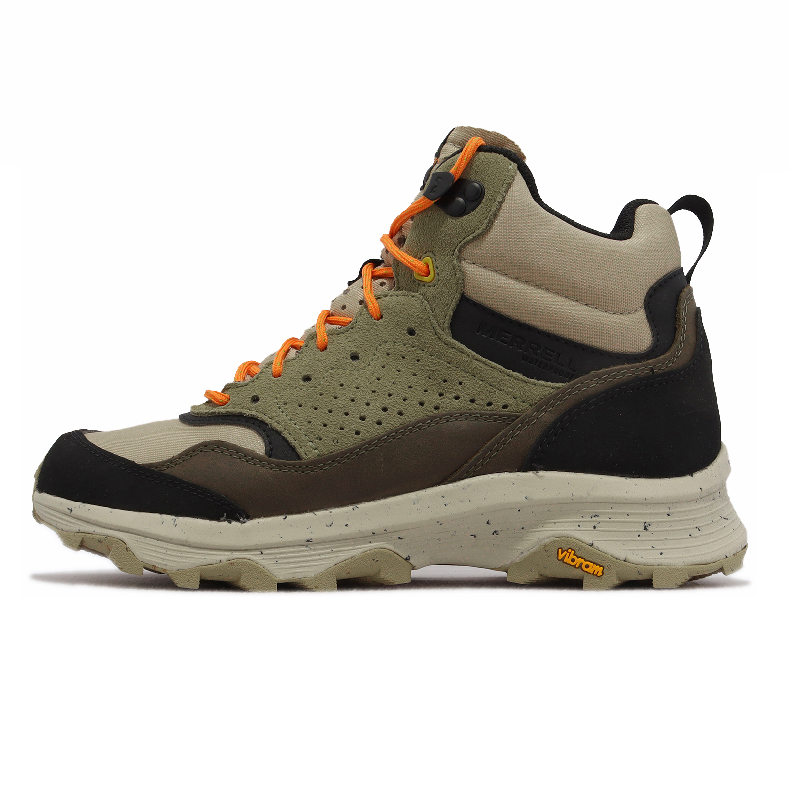 品牌: MERRELL型號: ML004535品名: Speed Solo Mid WP版型: 版型正常* DRY襪套式防水結構-全防水透氣,幫助雙腳保持乾爽。