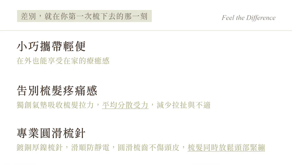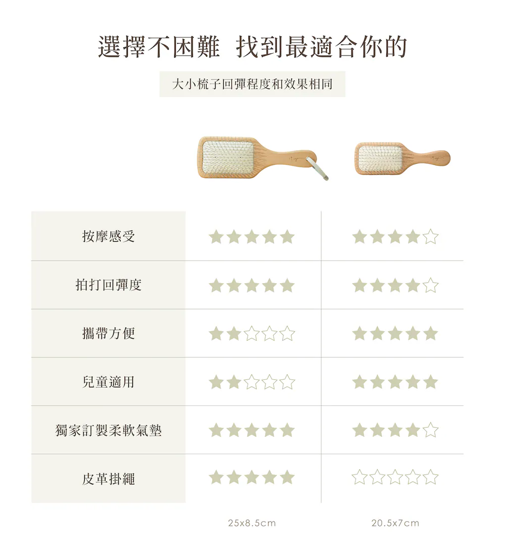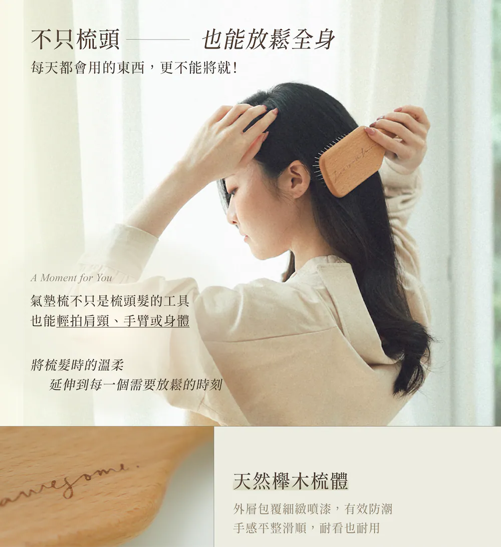 獨家訂製氣墊軟硬度研發最符合日常梳理所需的彈性