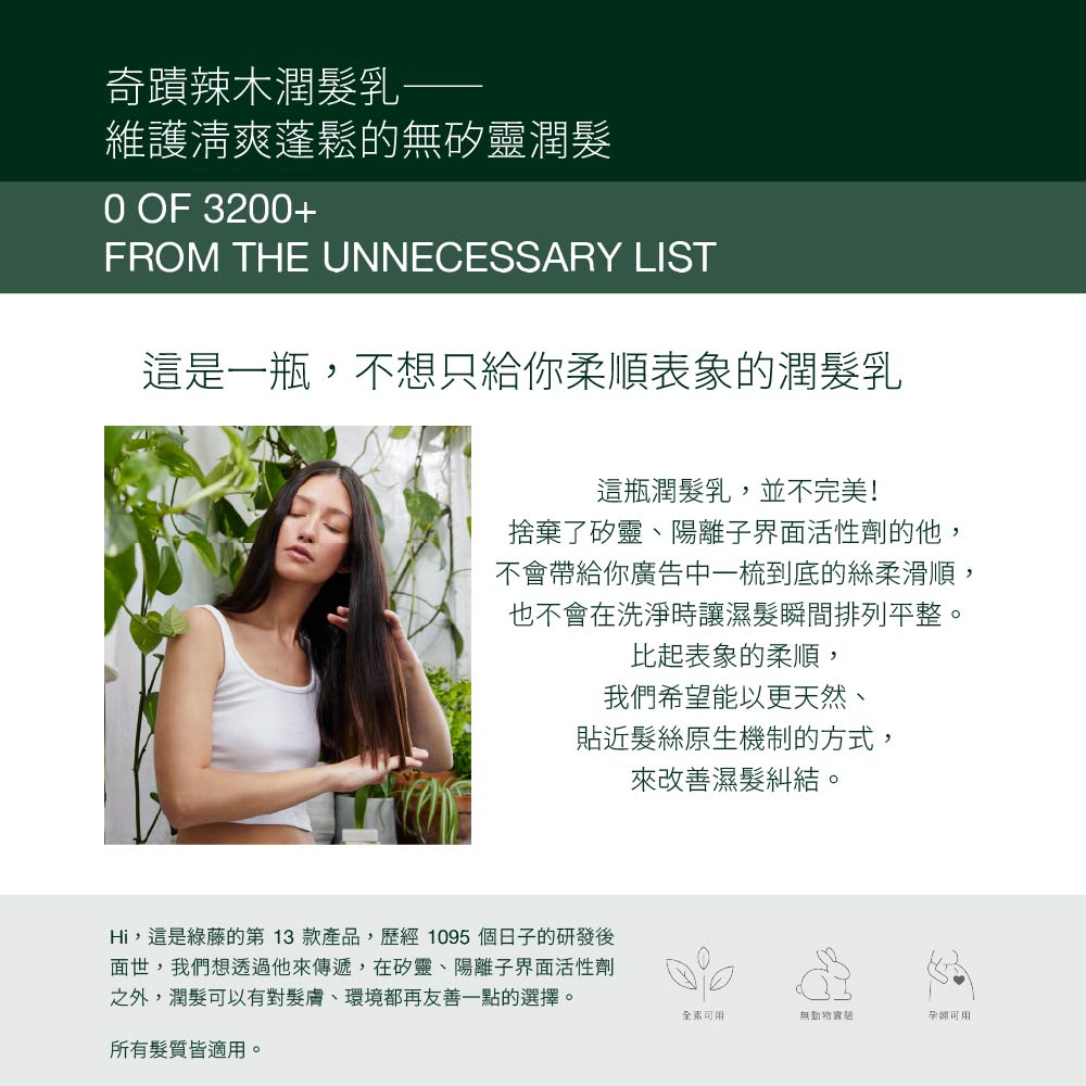 奇蹟辣木潤髮乳——維護清爽蓬鬆的無矽靈潤髮
