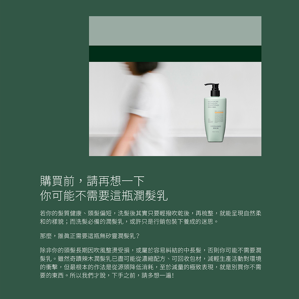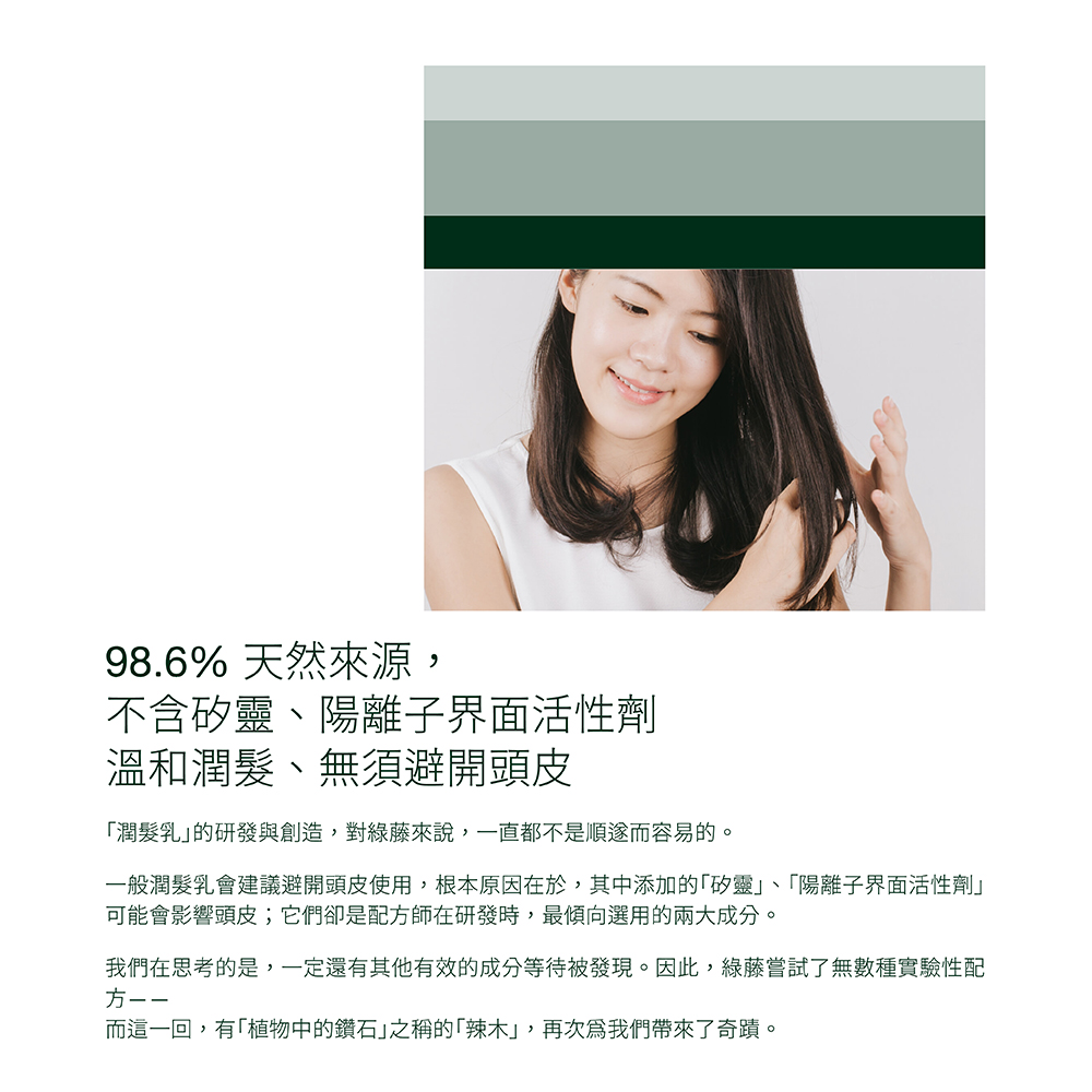 *提醒事項:沒有一個產品適合每一個人,如果使用後有任何皮膚敏感不適,請您先停用、觀察後續皮膚狀況,並聯繫綠藤客服,或視情況尋求醫師協助。