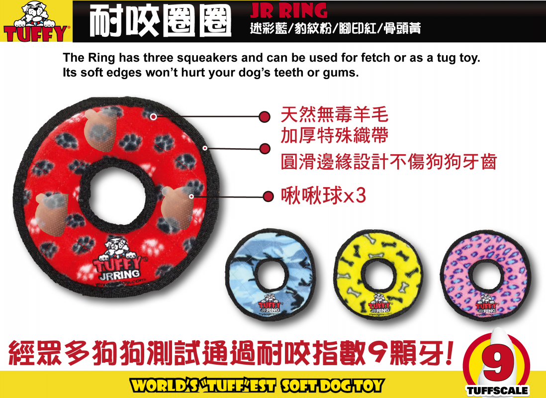 TUFFY 設計特殊邊緣縫製的超耐咬玩具,不傷狗狗的牙齒