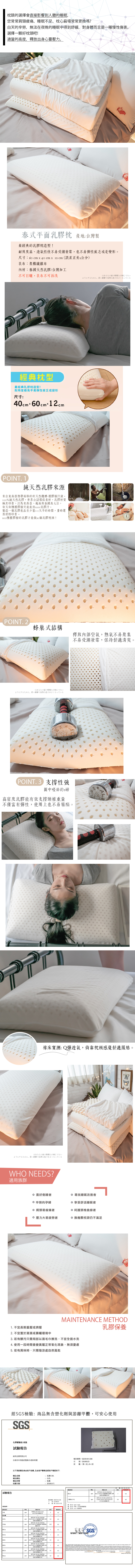 最經典的乳膠枕造型!耐用度高、透氣性佳不易受潮發霉,也不易彈性疲乏或是變形。