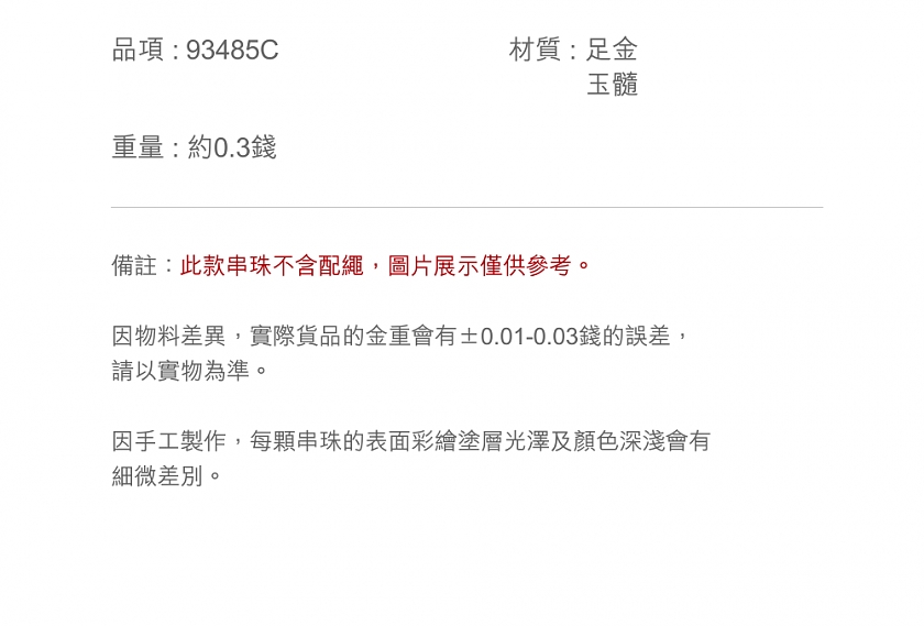 ‧材質:足金