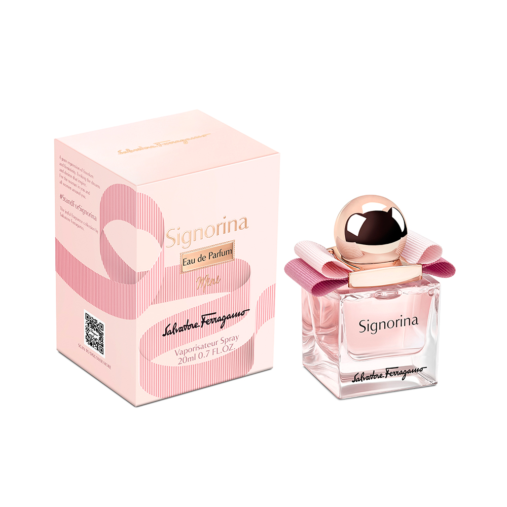 Signorina 芭蕾女伶女性淡香精 靈感來自於 Salvatore Ferragamo 品牌與年輕時尚女性密不可分的連結,是一款歡慶女性時尚的香氛,帶有雅緻、俏皮及清新的風貌。而「Signorina」一詞即代表著所有時代裡優雅、充滿魅力的女孩,且具有永恆的時尚感、創造力和大膽表現。芭蕾女伶女性淡香精的方形瓶身設計,彷彿珍貴的珠寶盒。瓶蓋以可愛的玫瑰金圓蓋搭配品牌全新演繹得的雙層粉色羅紋緞帶「Vara蝴蝶結」。外盒則由玫瑰金滾邊的外框優雅地點綴,散發耀眼及經典的風格。