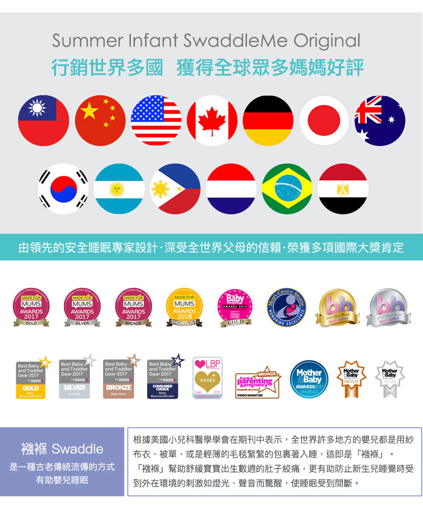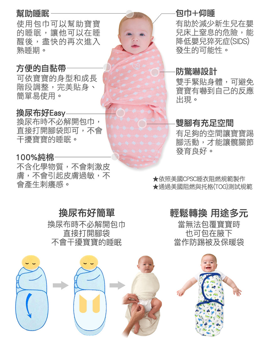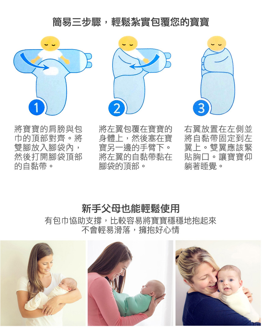 ■當無法包覆寶寶時,也可將SwaddleMe包巾包在寶寶腋下當作防踢被及保暖袋