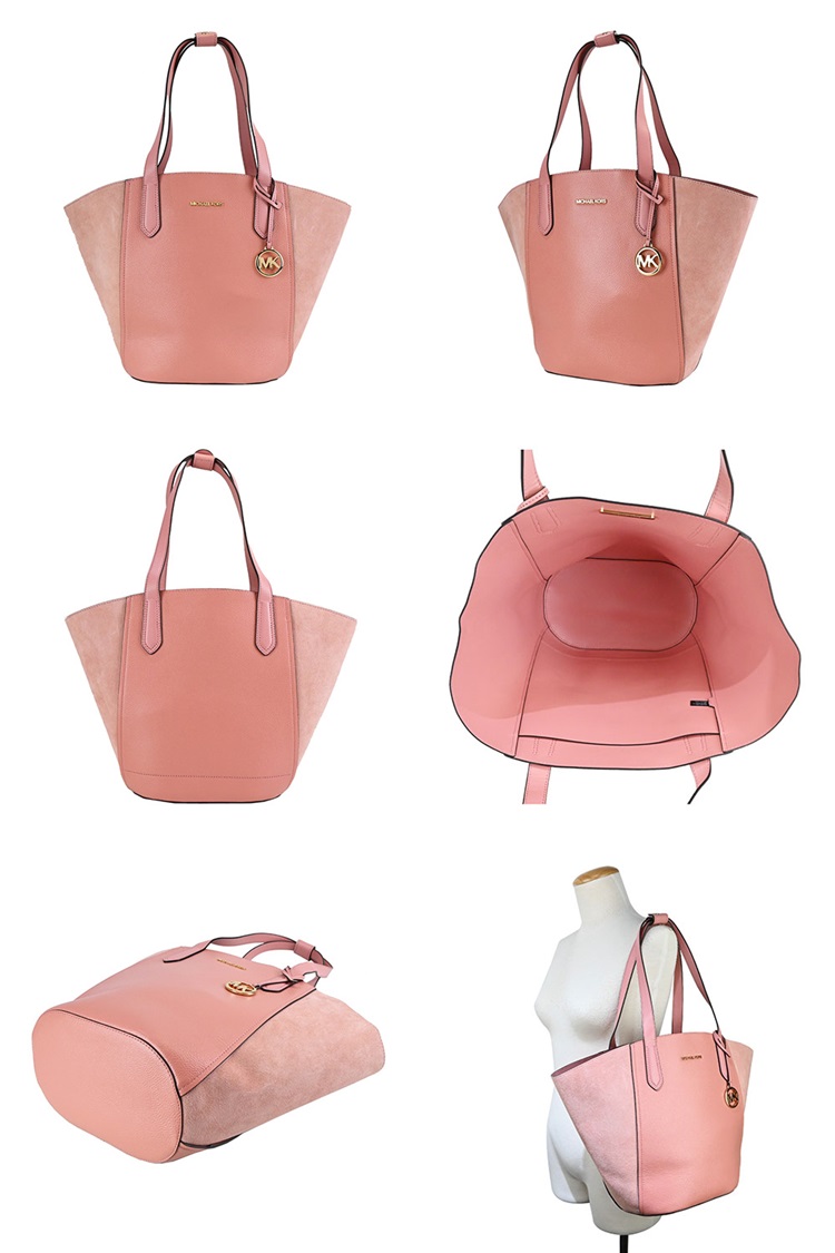 [平輸版] 【MICHAEL KORS】PORTIA絨面拼荔枝紋皮革扇形托特包(大/柔粉)真品平輸 | NearMe | 線上送禮平台『獨家支援 收禮者改選禮物』