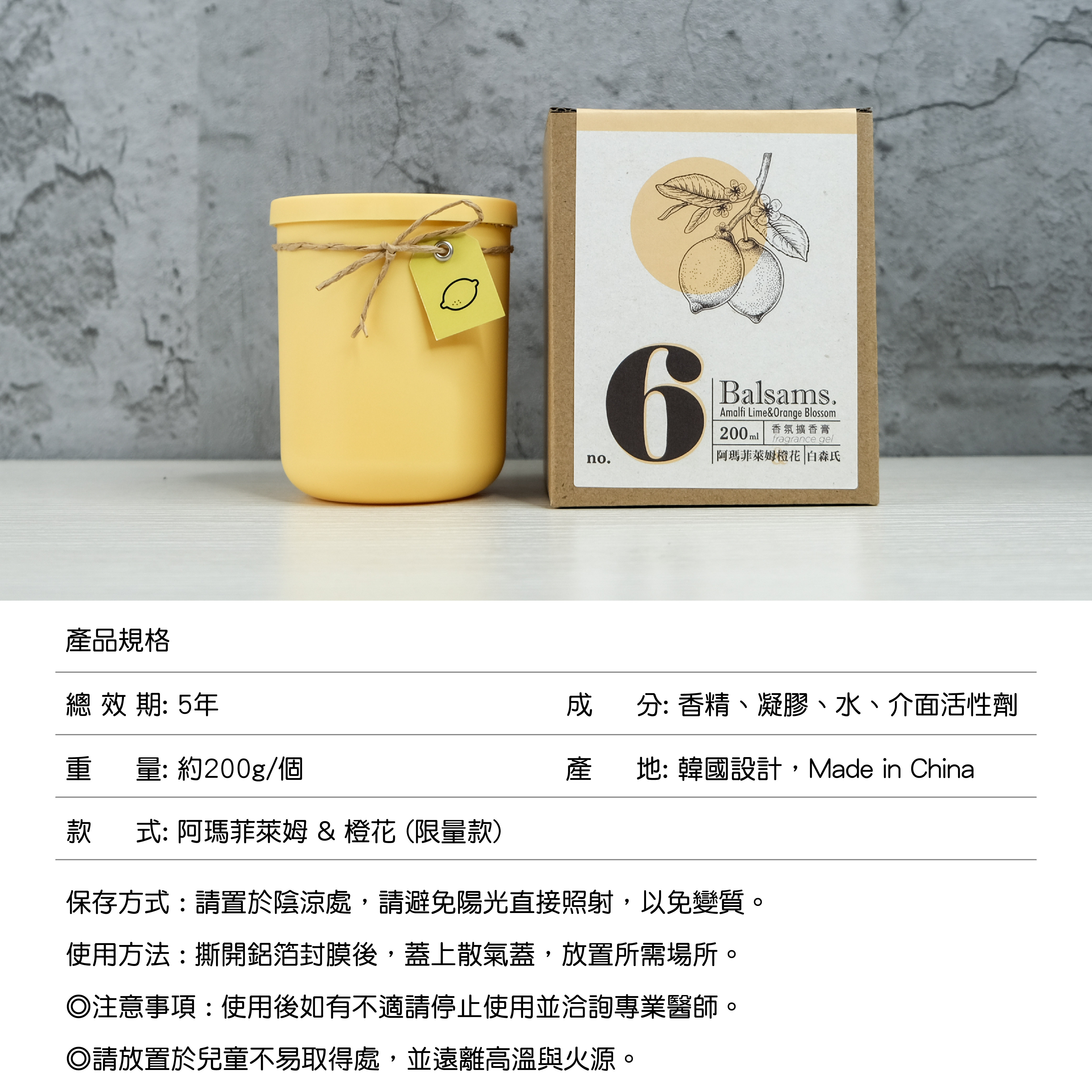 Balsams白森氏限量版香氛擴香膏200gX1(阿瑪菲萊姆&橙花)Balsams白森氏經典香氛擴香膏200gX1(口味任選)Balsams白森氏香氛掛袋X2(白麝香+緋色櫻花)※長效持久配方香氣可持續60天※可混搭揉香創造專屬香氣